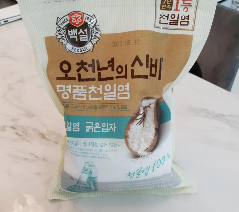 집에 있는 명품천일염 굵은 입자를 넣었다.