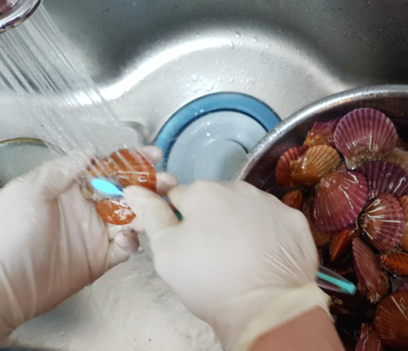 닦다보면 가리비 껍데기가 깨끗해지는 것이 눈에 보인다.