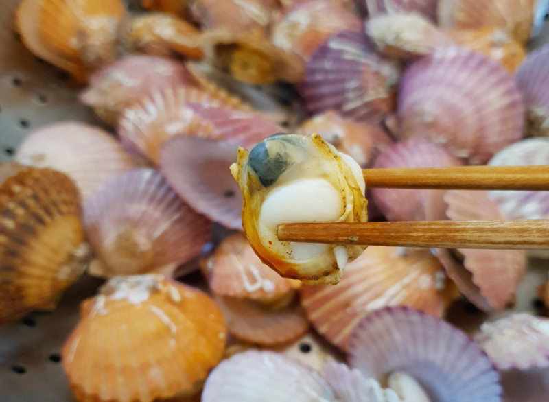 가을바람을 맞으며 가리비를 사러 달려갔다.
