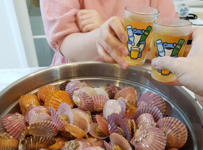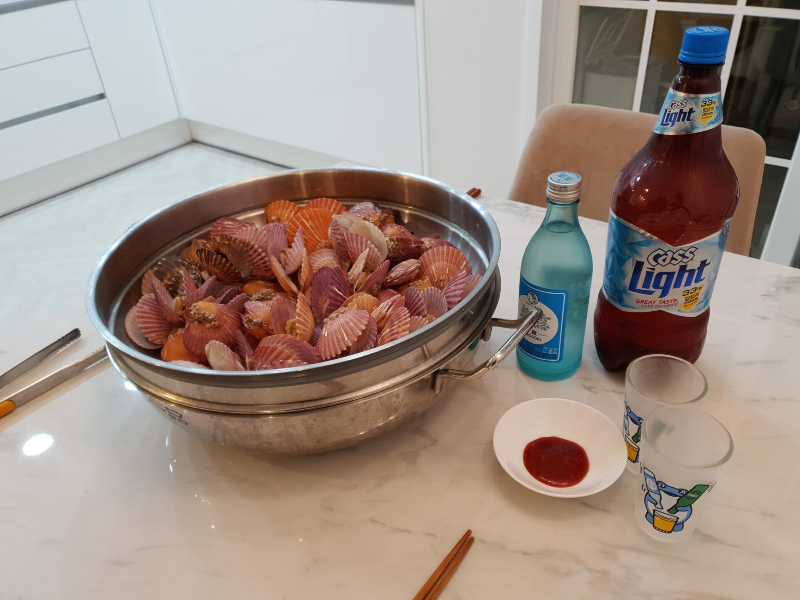 가리비찜 2kg을 소맥과 함께 먹고 나니,