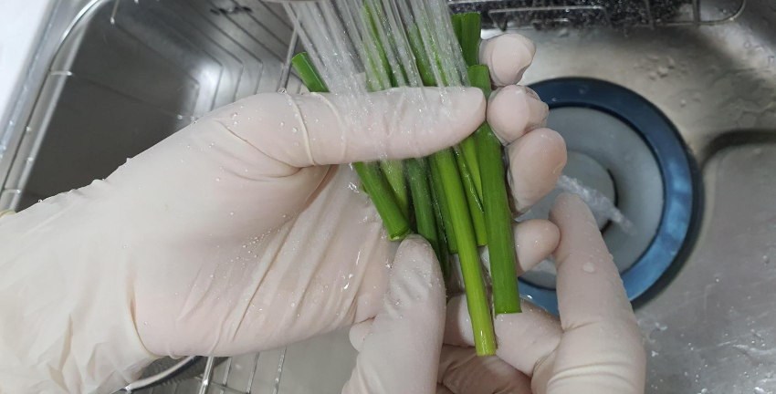 야채를 물로 씻었냐고 물어보았다.