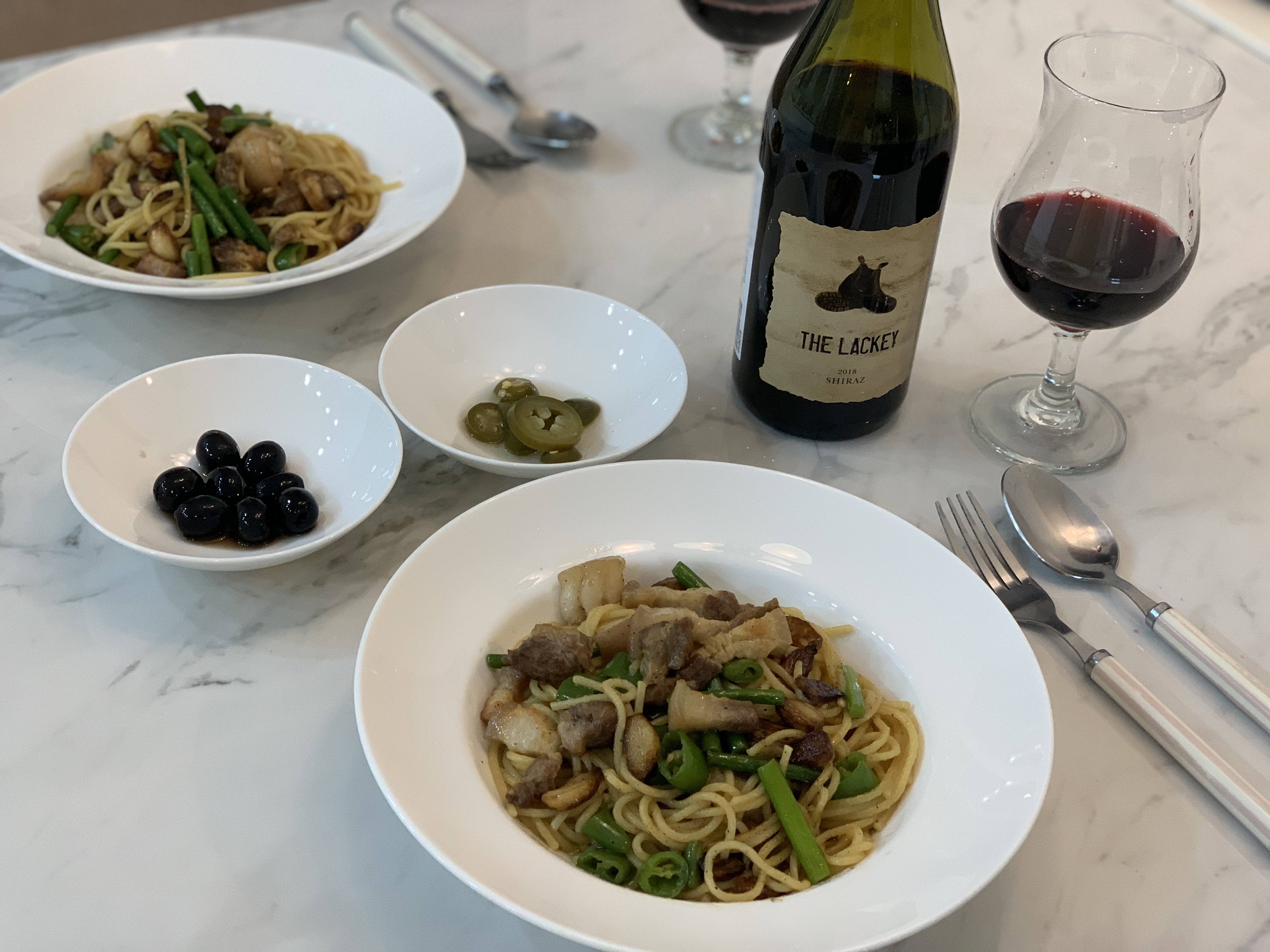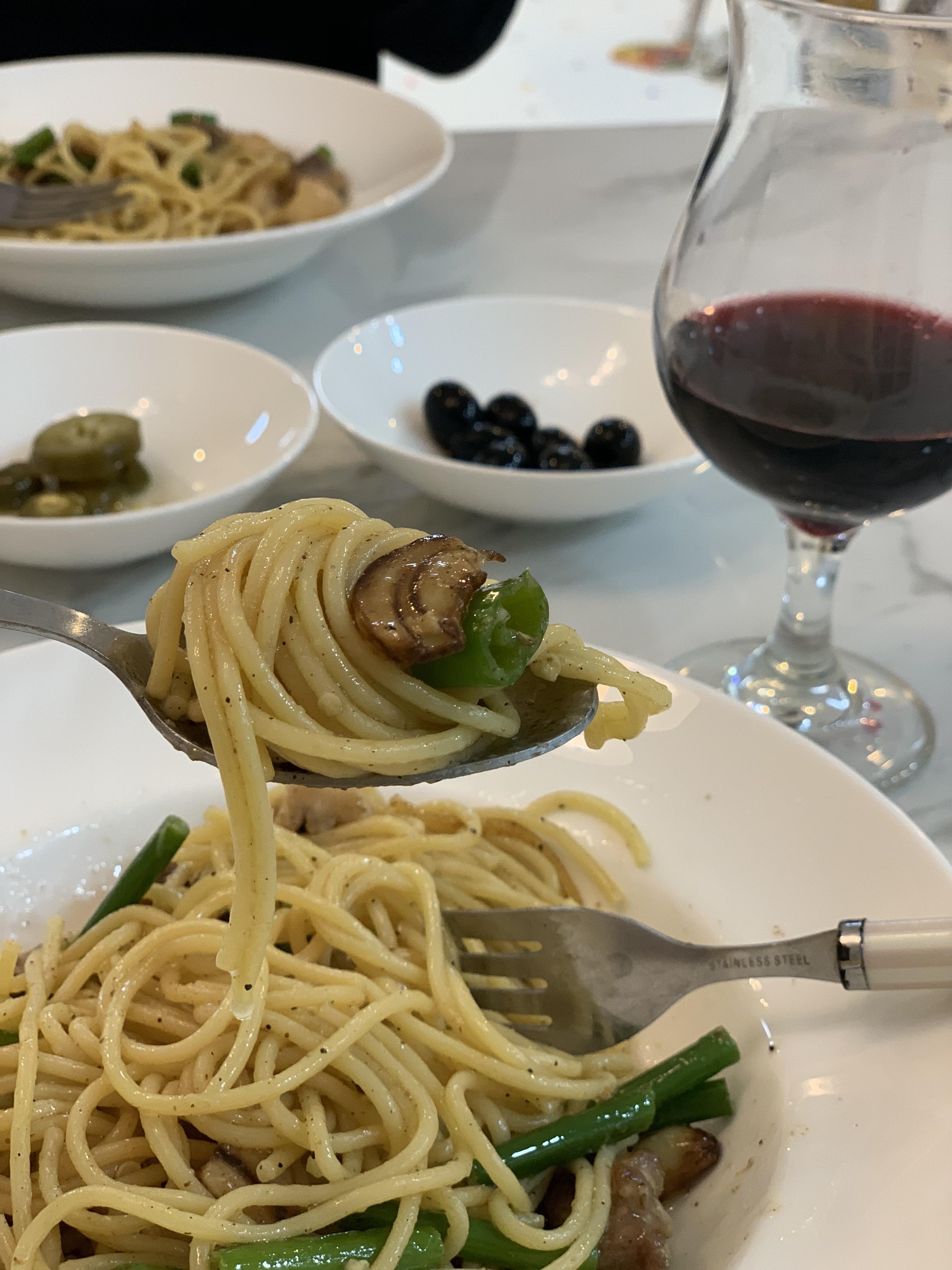 파스타에 와인이 빠질 수 없다.