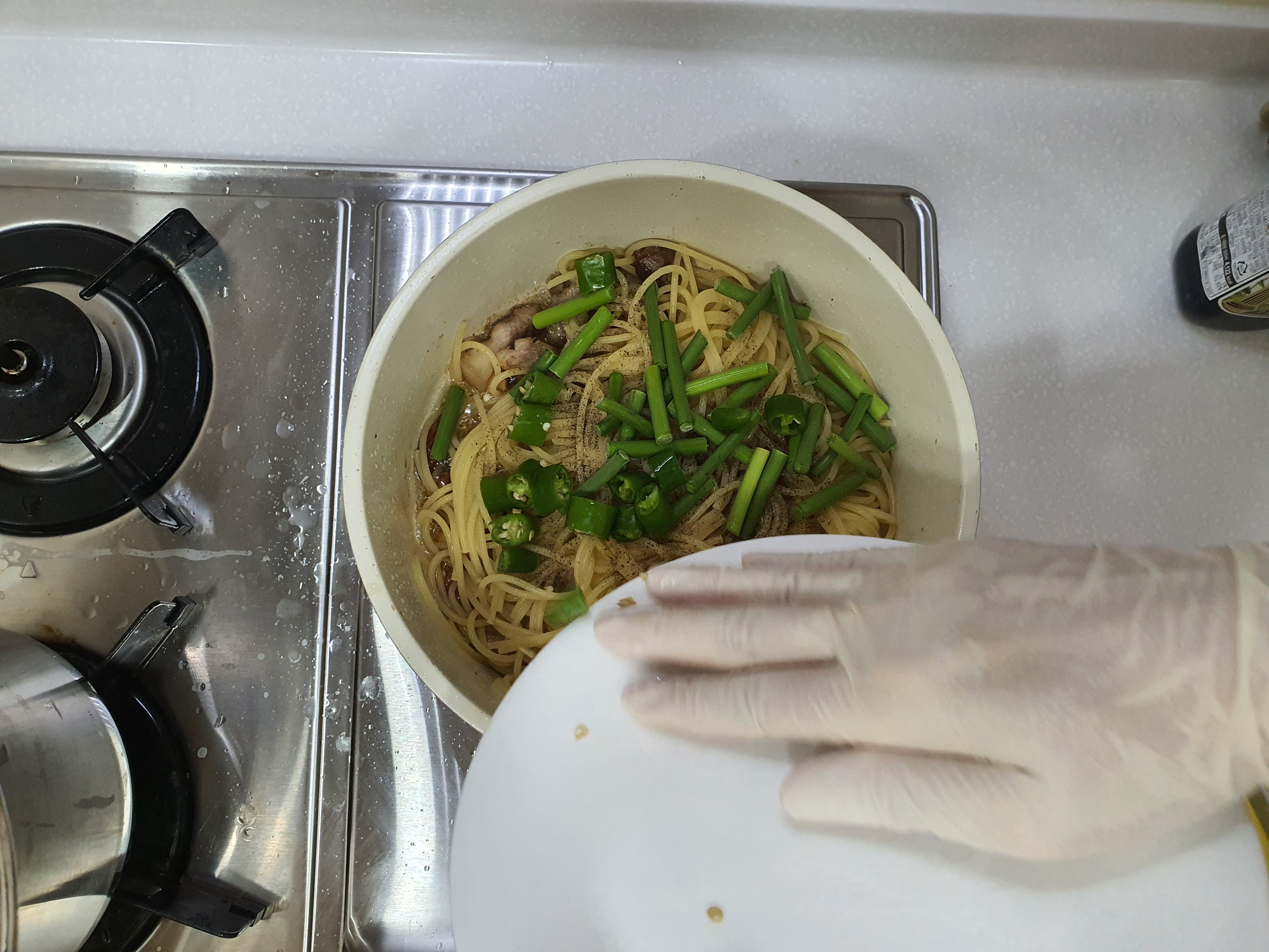 파스타 면을 투척하고 나면,