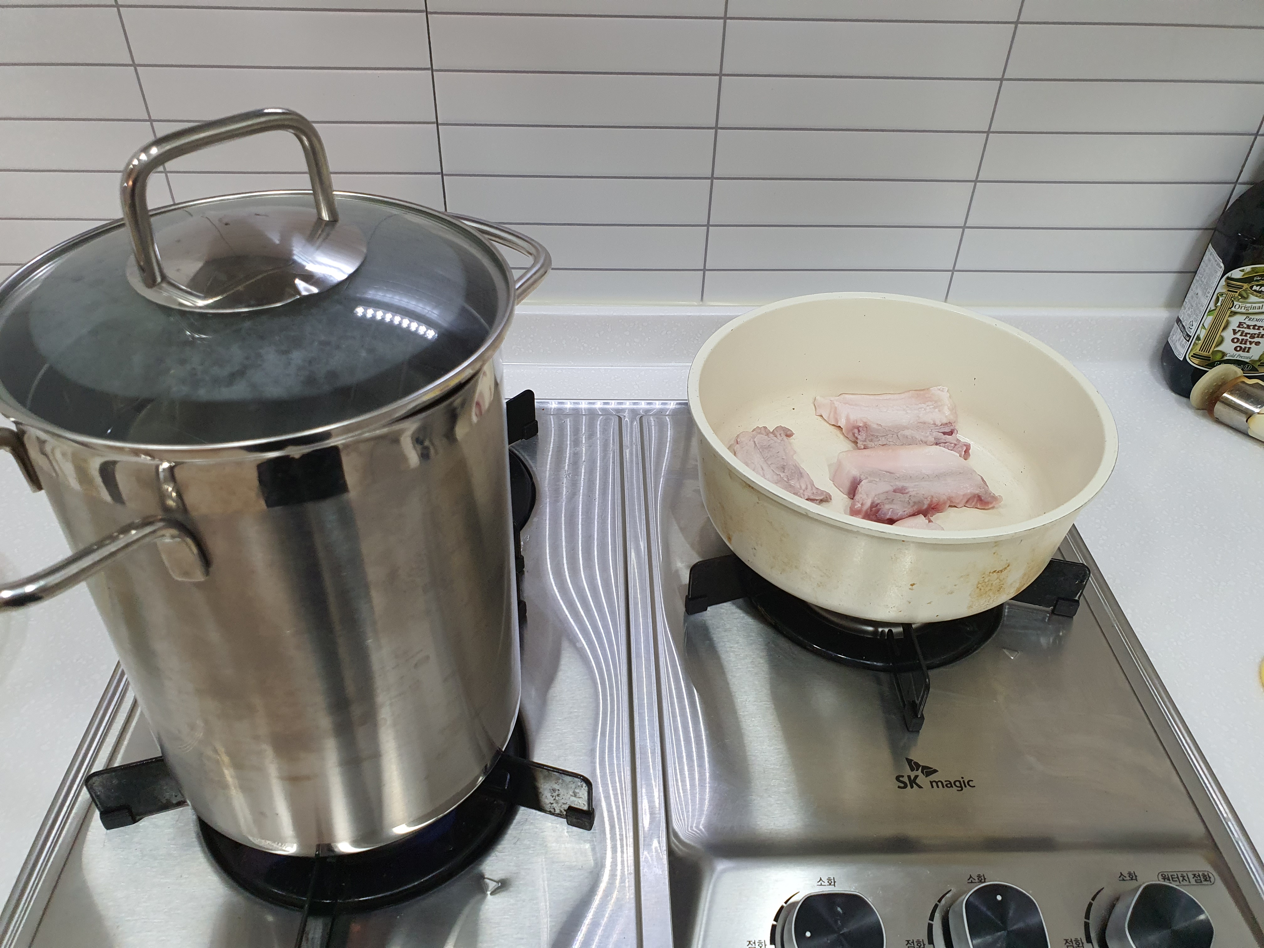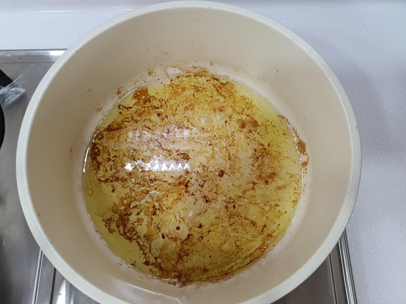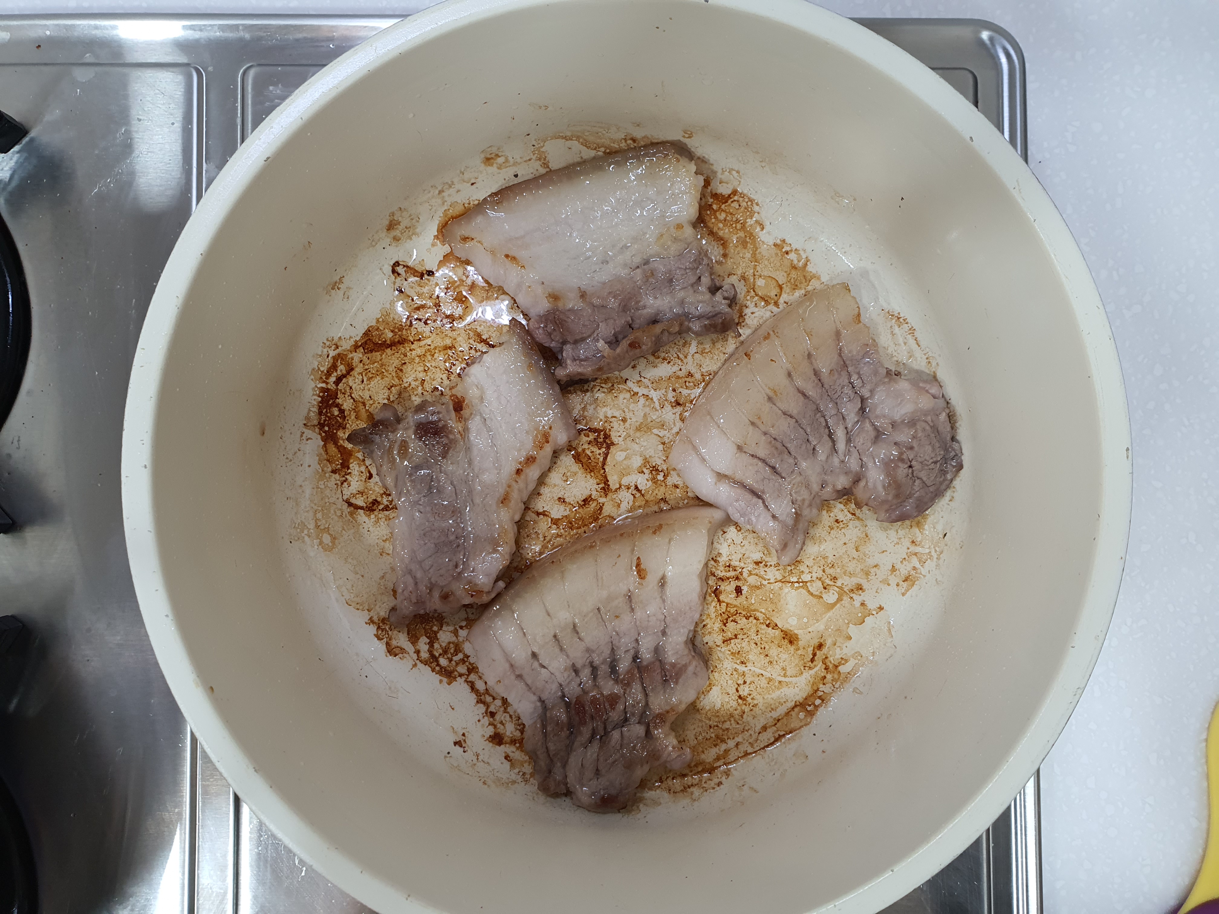 냄비에 나온 삼겹살 기름 양을 눈으로 가늠해서,