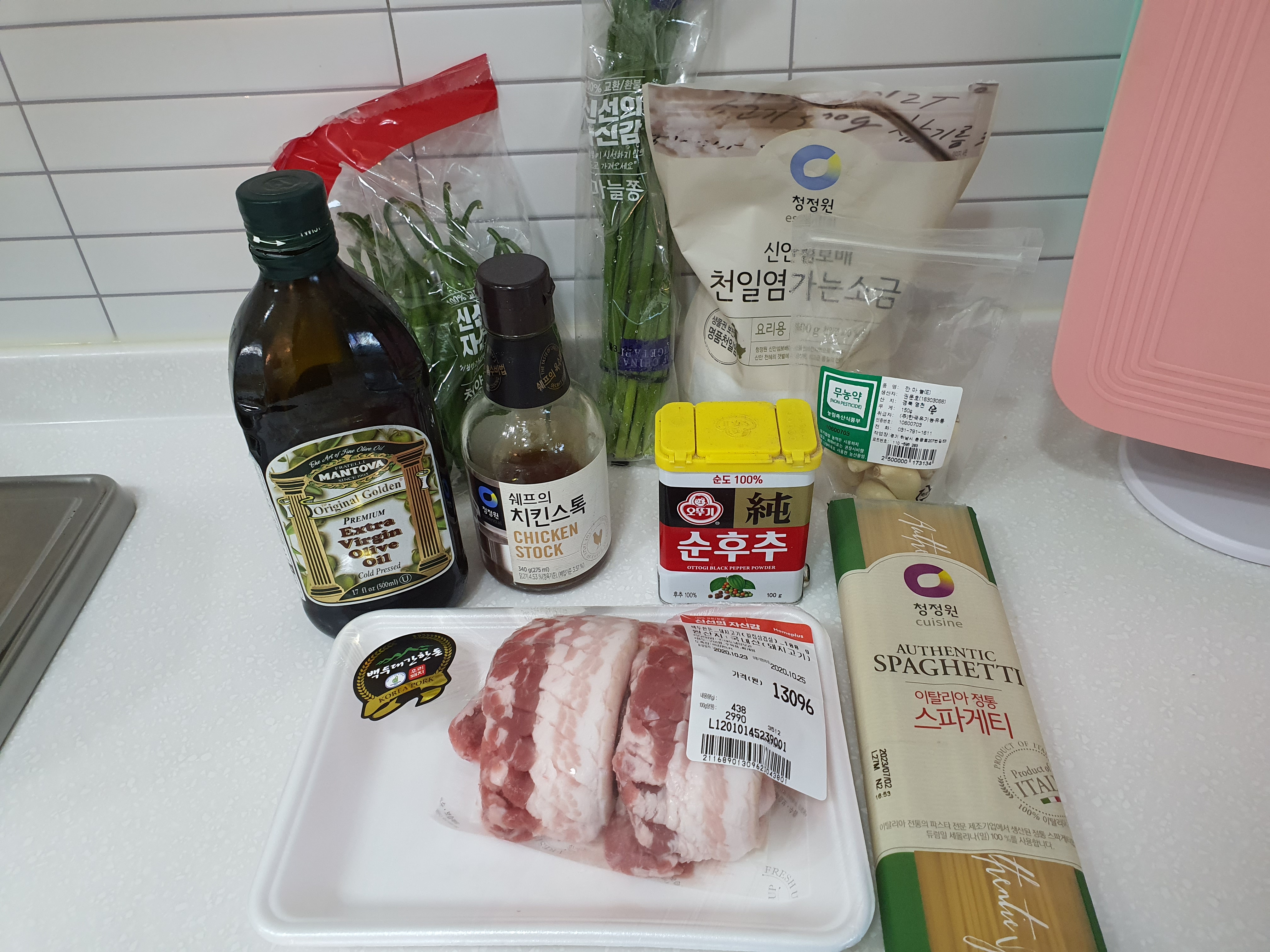 삼겹살 오일 파스타를 만들기 위한 재료 중