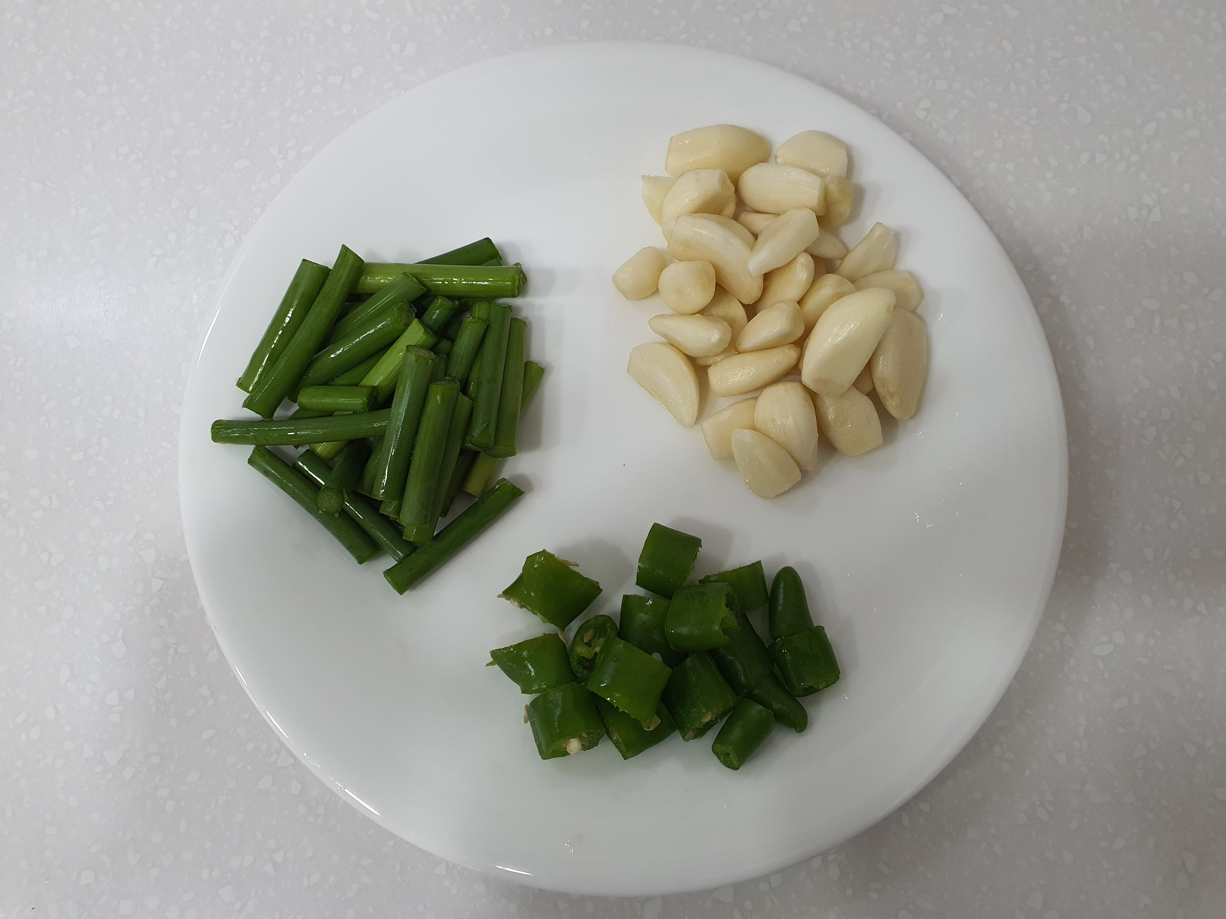 마늘쫑은 그냥 길다란 것 4가닥을 골라