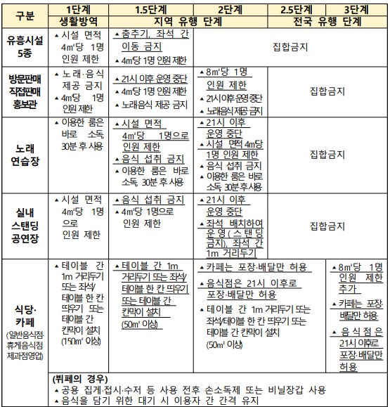 2~2.5단계는 30% 이내로 이용 인원을 제한하고,