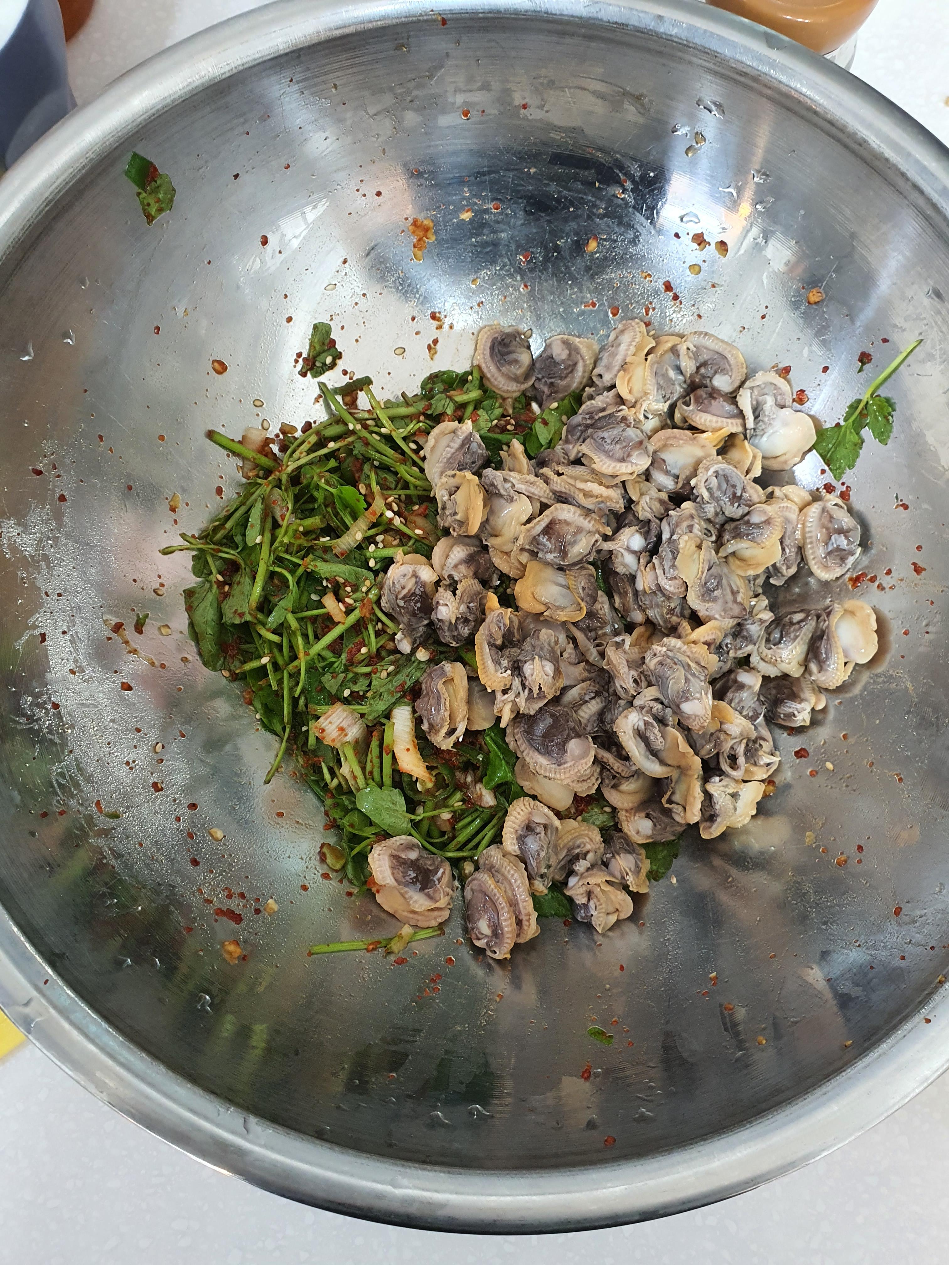 와이프가 좋아하는 미나리와 꼬막을 이용해