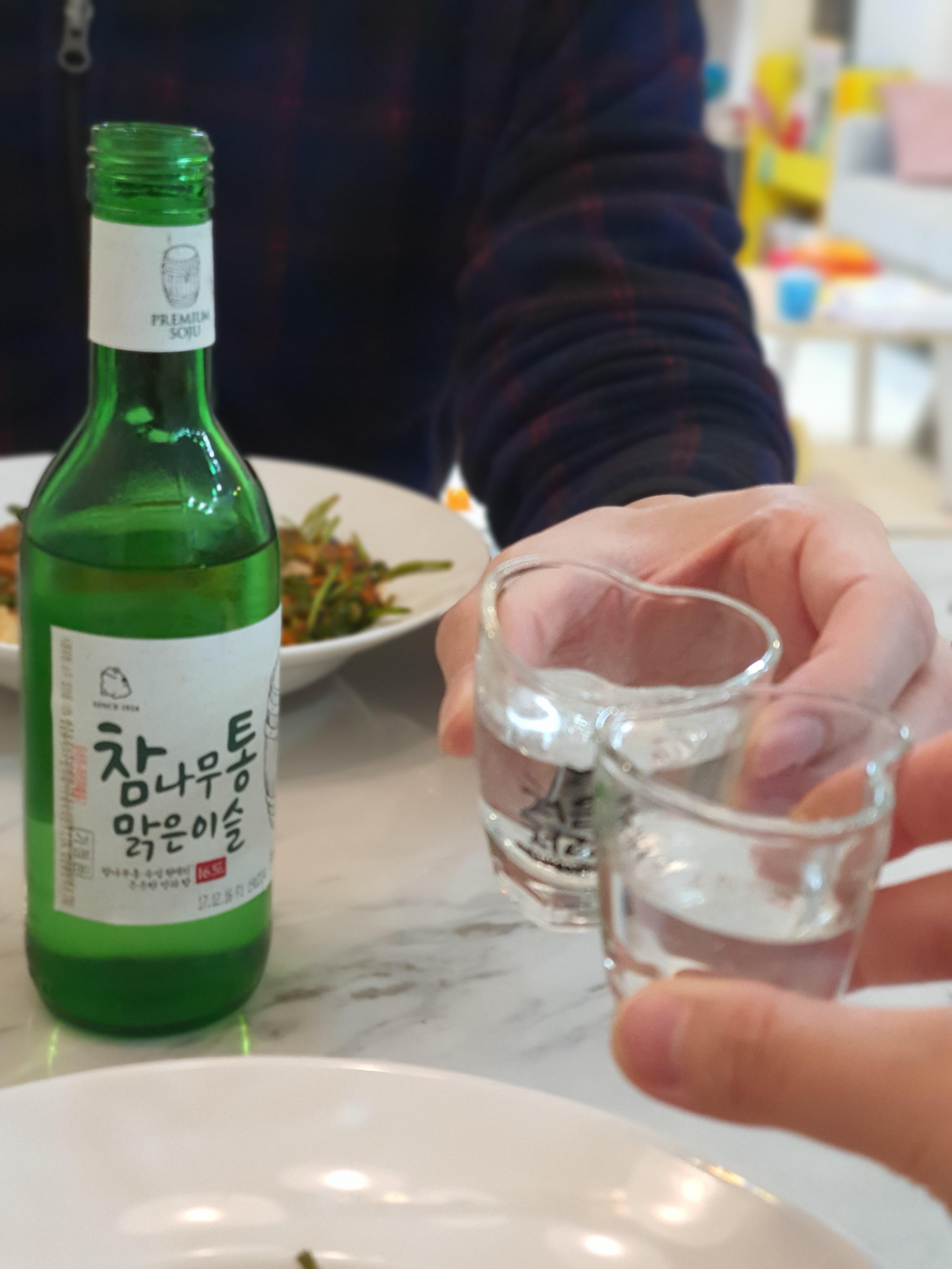 꼬막 비빔밥엔 깔끔한 참나무통 맑은 이슬이다.