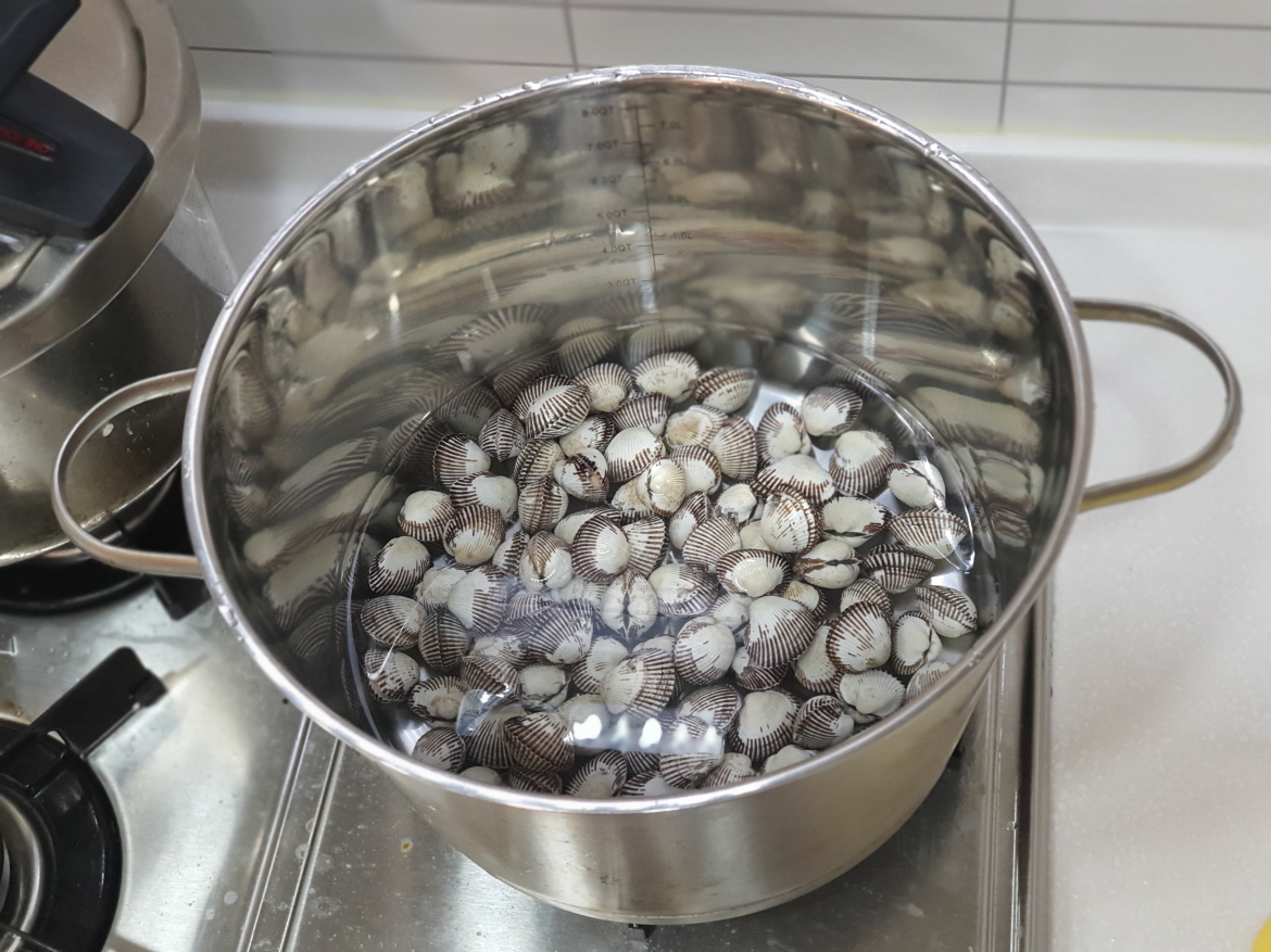 자 이제, 꼬막 삶는 작업이 끝났으니