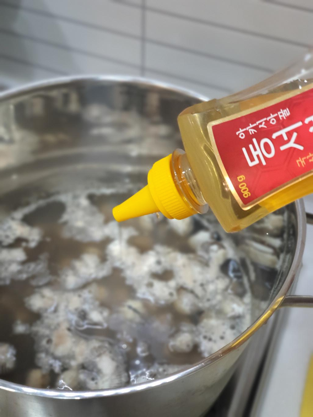 이때, 꿀을 2스푼 넣어준다. (비린내 제거)