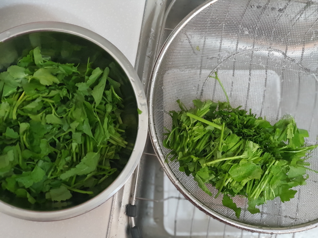 미나리와 대파를 사 왔다. (양파는 깜빡함...)