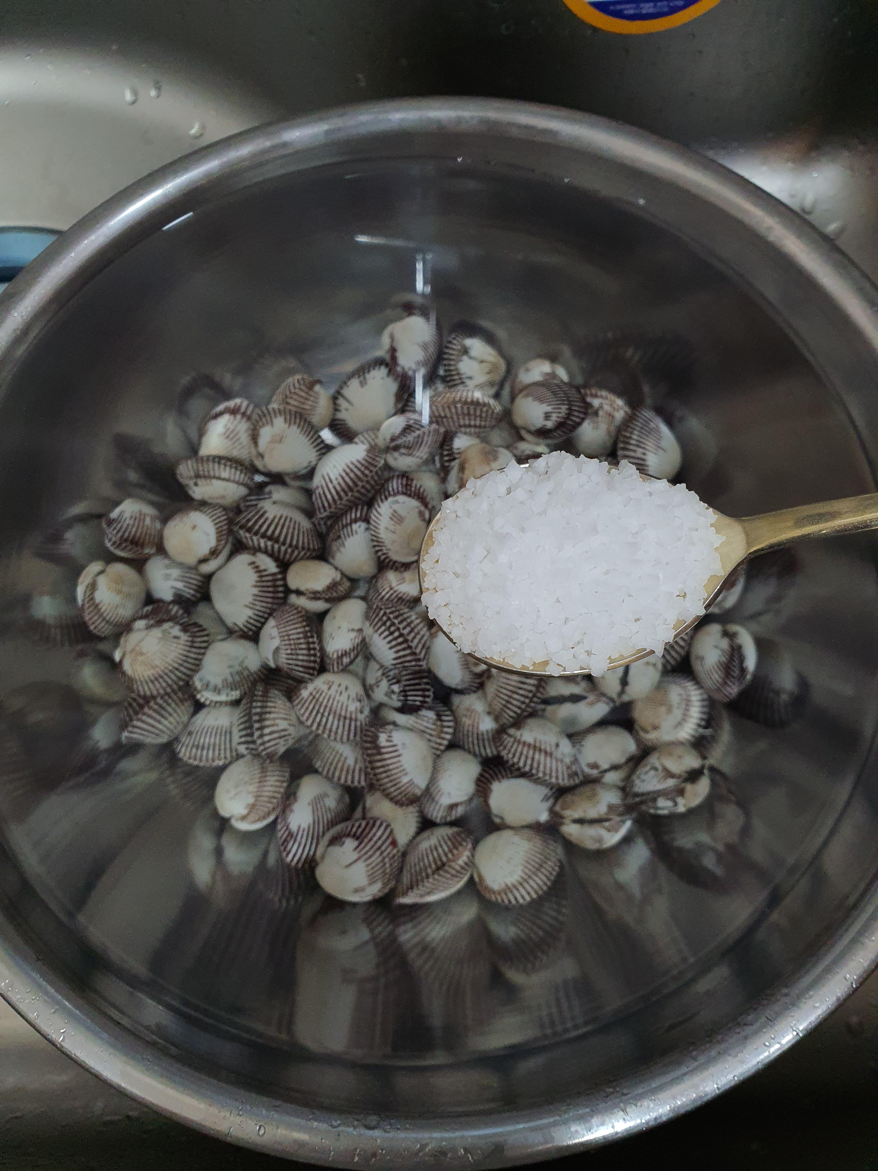 (해감 시 필요한 굵은소금 2스푼)