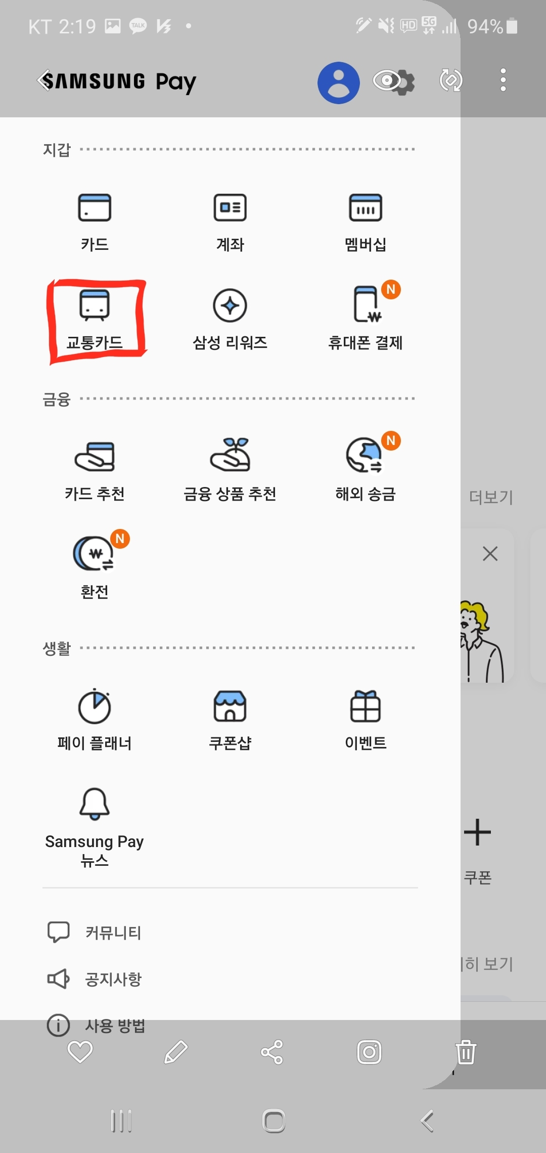 삼성 페이 교통카드 사용법에 대하여 알아보자.