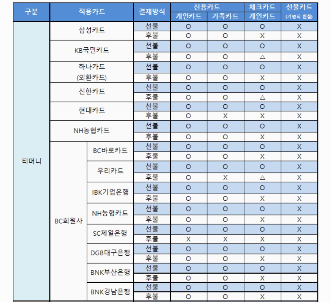 | 선불 | 2.0~3.0% (카드종류 및 카드사별 상이) |