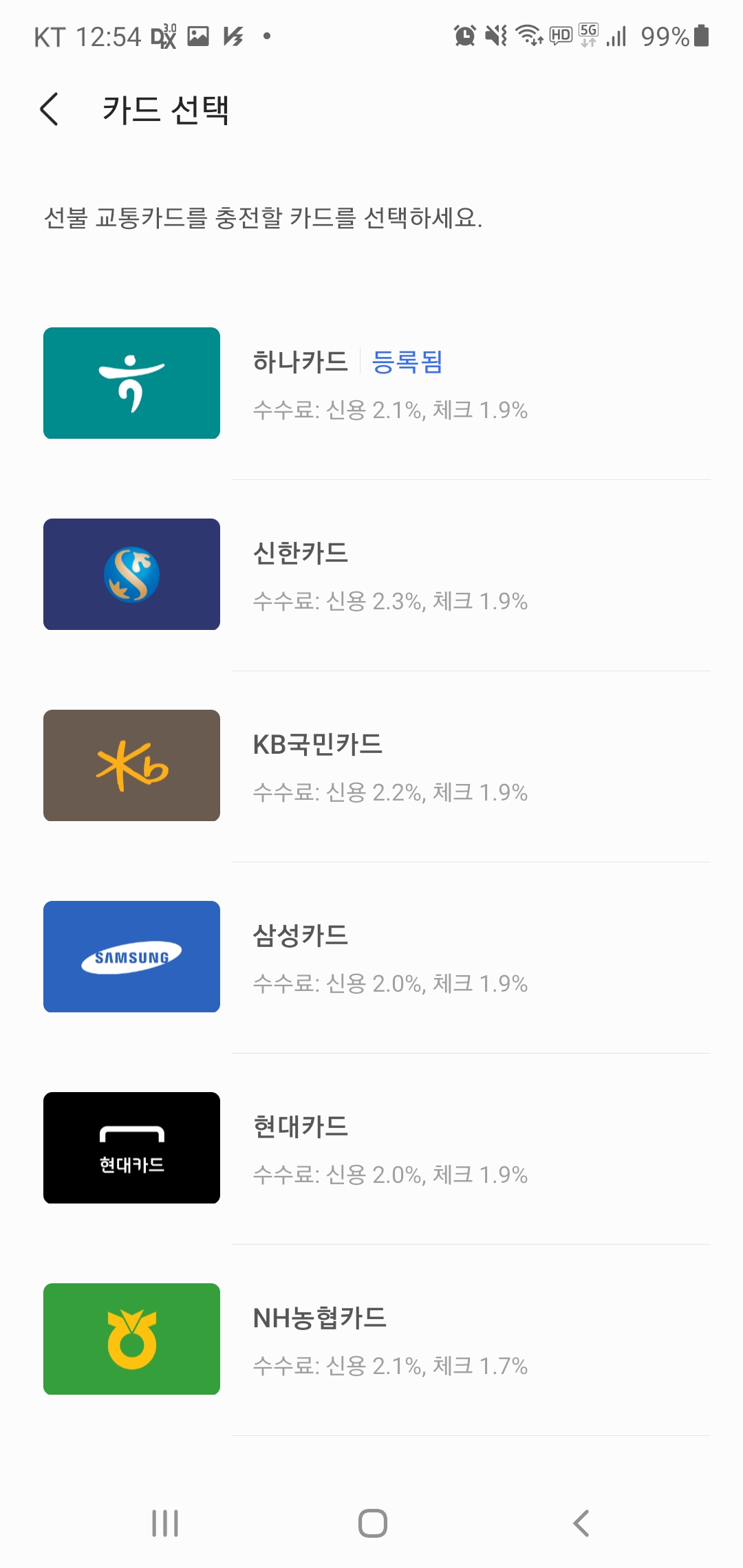 교통카드 선택