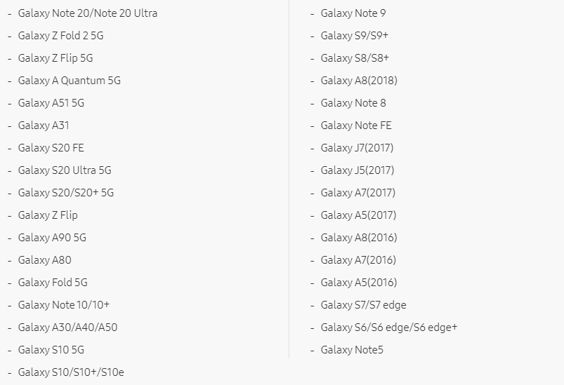 갤럭시도 아래의 기기에서만 사용 가능하다.