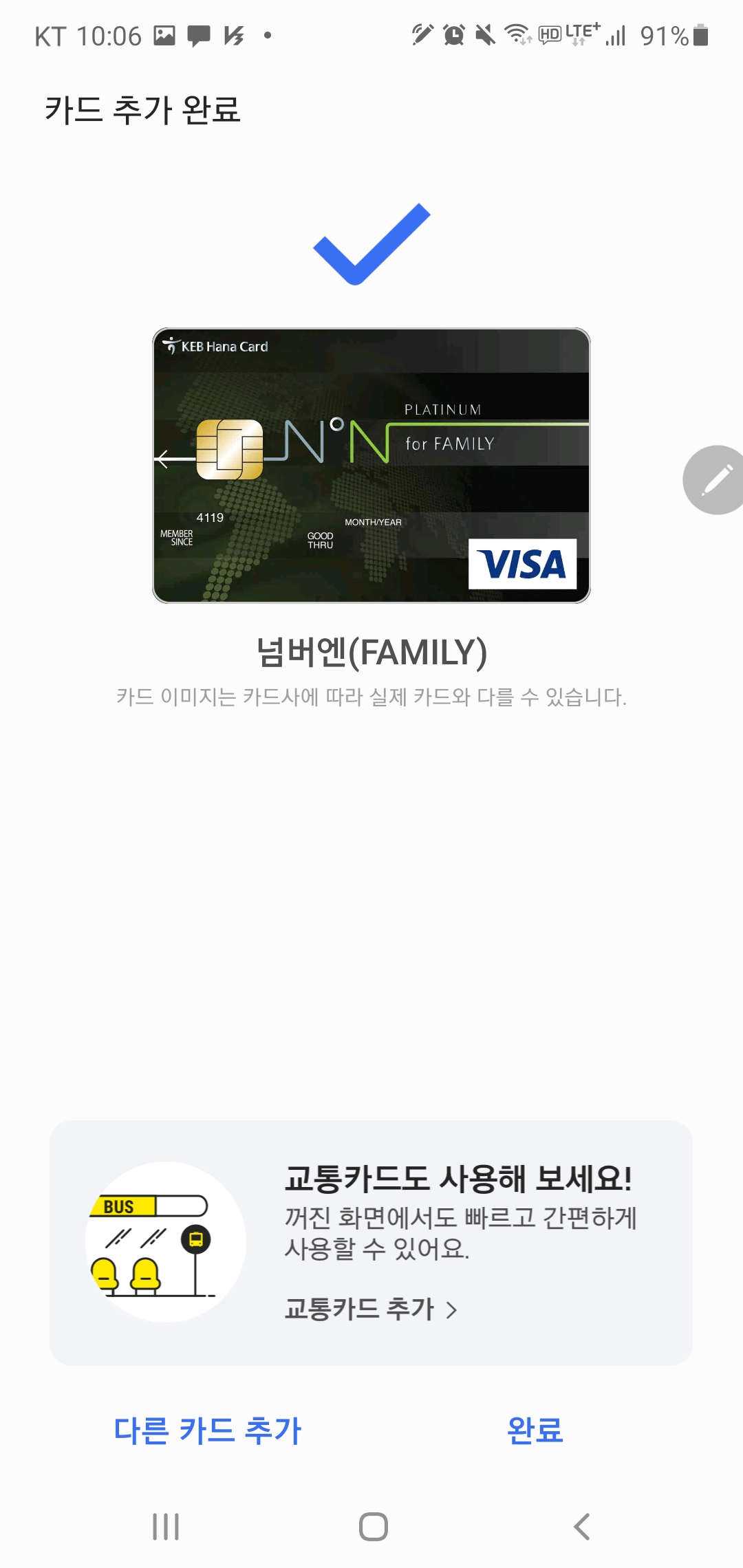 자, 교통카드 추가가 완료되었다. (난 티머니로!)