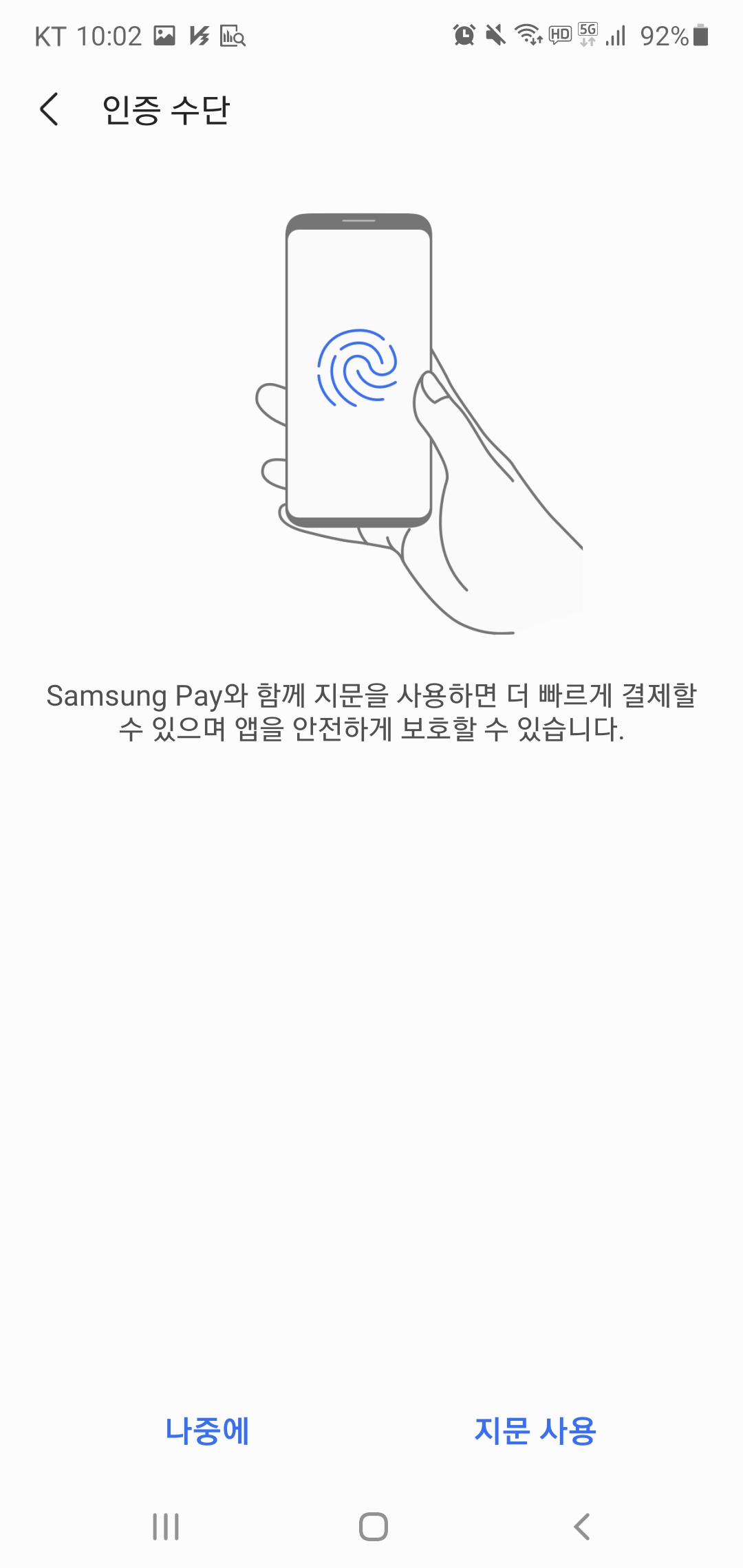 인증 수단(지문)이 나오는데,