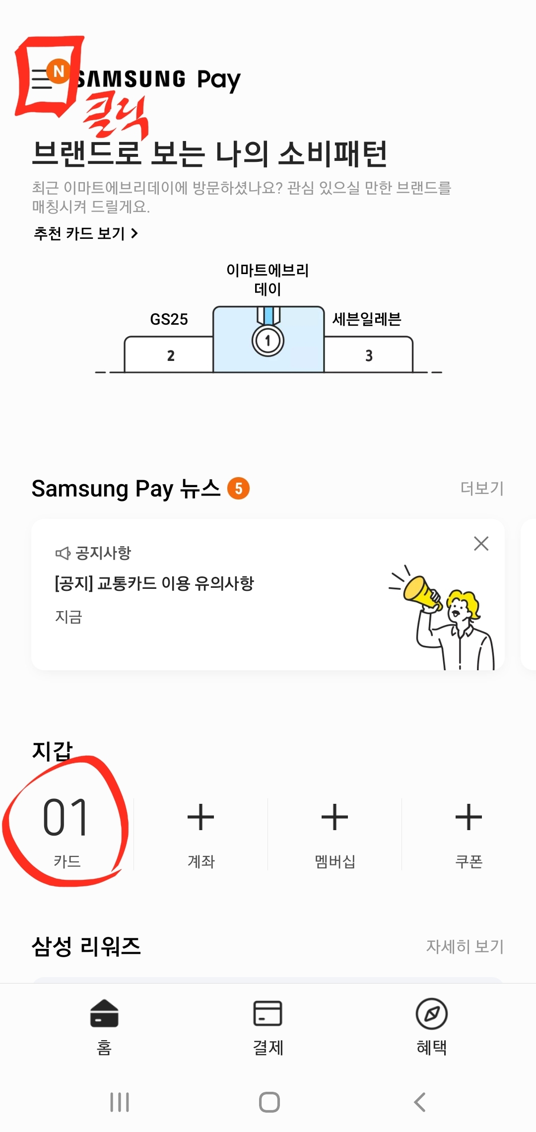자, 이제 삼성 페이 지갑에